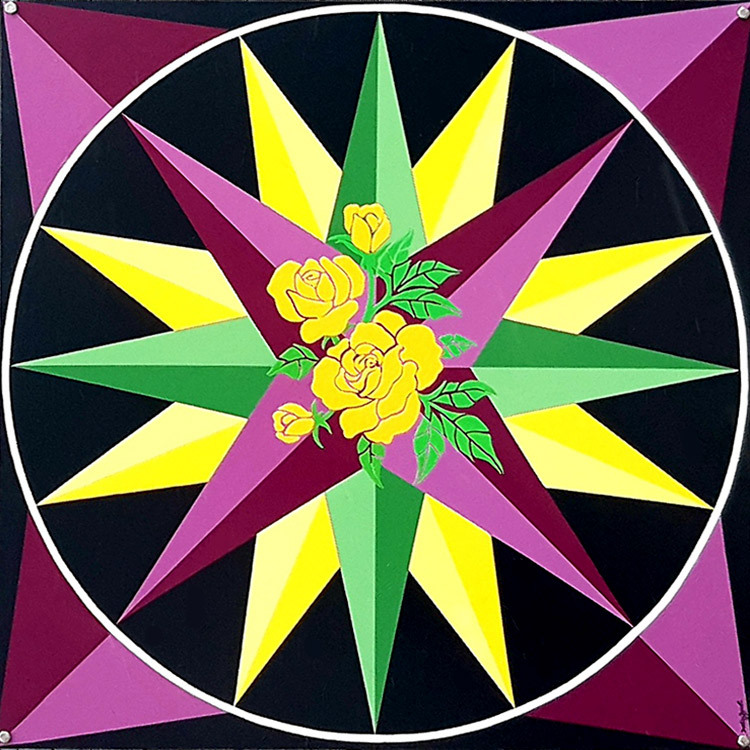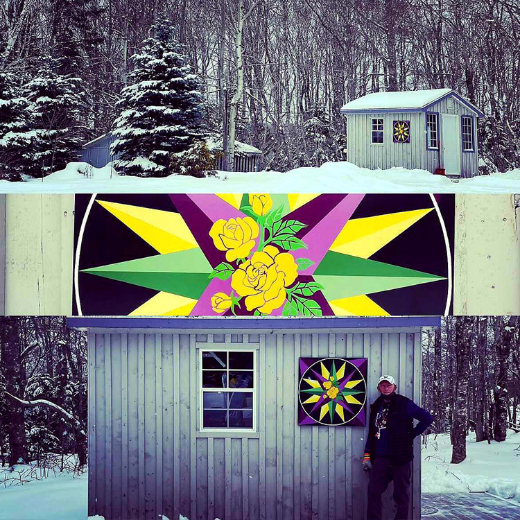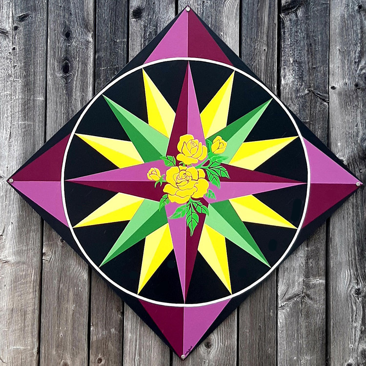 This hand painted barn quilt was commissioned to honor master fabric quilter; Isabel McKeen. The striking star is one of many beautiful designs expertly stitched together by Isabel over the years. The family wanted a significant outdoor art piece that would capture the strength of a life well lived.