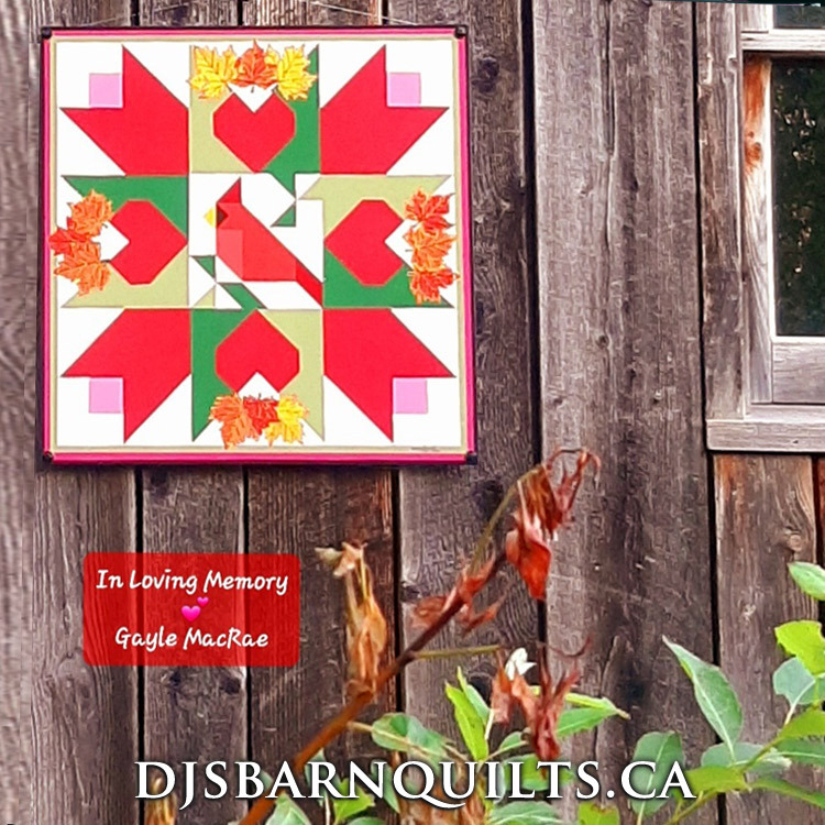 Elaine Grant commissioned this barn quilt as a gift for her brother Andrew in honor of their beloved Mom, Gayle MacRae, who passed away April 5th, 2022.